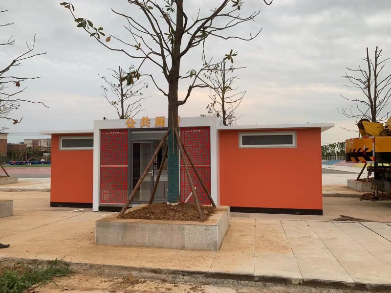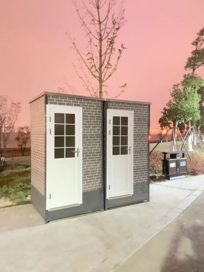 MORE拼裝廁所;在廠里做好各個廁所部件,再到現場組裝在一齊,適合不易運輸的大型廁所。這座箱式廁所,女廁5個蹲位內配工具間,男廁2個蹲位+2小便斗,第三衛生間由殘疾馬桶、助力洗手盆和兒童馬桶、兒童洗手盆外加嬰兒臺等設施。廁所前后有窗,通風采光,前部走廊裝有屋檐,防雨防曬。此廁所位于公路綠道邊,整體大氣,功能齊全,造型美觀,是一道難得的靚麗景觀!